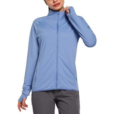 Womens UPF 50+ Sun Protection Jacket Lightweight Zip up Outdoor Running Hiking Hoodie