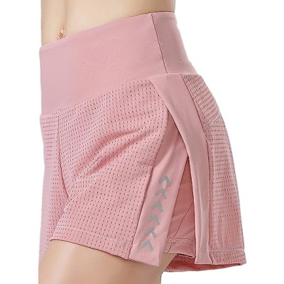 Women-Running-Shorts 2-in-1 High-Waisted Workout-Shorts - Gym Athletic Slit Shorts