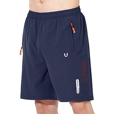 Men's Gym Workout Shorts Quick Dry Lightweight Athletic Training Running Hiking Jogger with Zipper Pockets