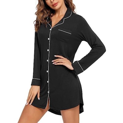 Nightgown for Women Short/Long Sleeve Button Down Nightwear Top Boyfriend Sleep Shirts Nightdress