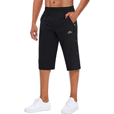 Men's Capri Shorts Quick Dry Below Knee 3/4 Capri Pants with Zipper Pockets