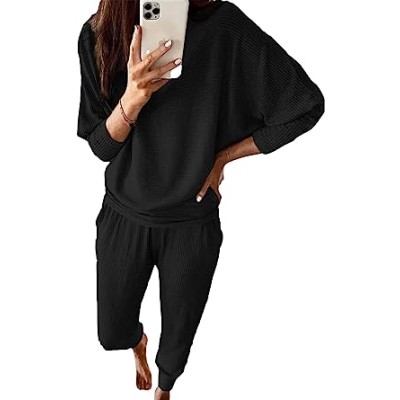 Women's Fashion Outfits 2 Piece Sweatsuit Solid Color Long Sleeve Pullover Long Pants