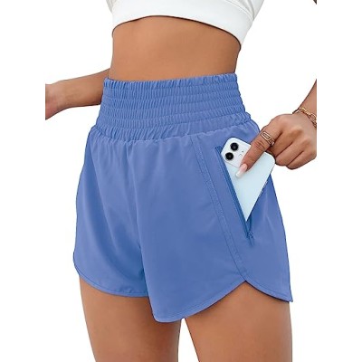 Women's Athletic Shorts High Waisted Running Shorts Pocket Sporty Shorts Gym Elastic Workout Shorts