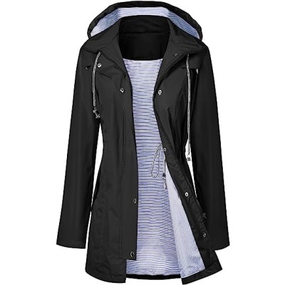 Women Waterproof Long Hooded Trench Coats Lined Windbreaker Travel Jacket S-XXL