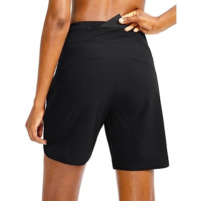 Women's 7" Athletic Running Shorts with 3 Zipper Pockets Long High Waisted Shorts Women for Workout Gym Hiking