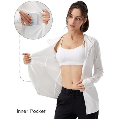 Womens UPF 50+ Sun Protection Jacket Lightweight Zip up Outdoor Running Hiking Hoodie