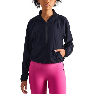 Lightweight Workout Jacket for Women, Cropped Athletic Gym Running Hoodie, UV Protection Half Zip Pullover UPF 50+